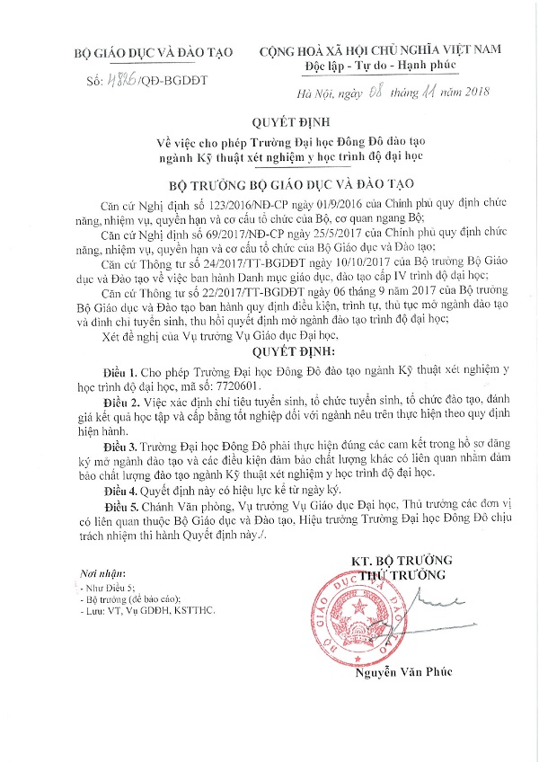 Quyết định mở ngành đại học chính quy - Kỹ thuật xét nghiệm Y học