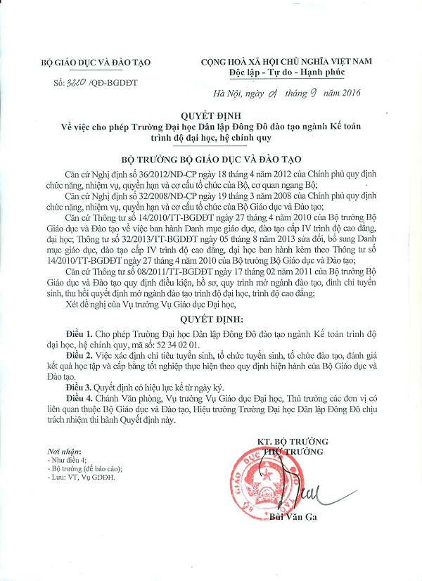 Quyết định mở ngành đại học chính quy - Ngành Kế toán