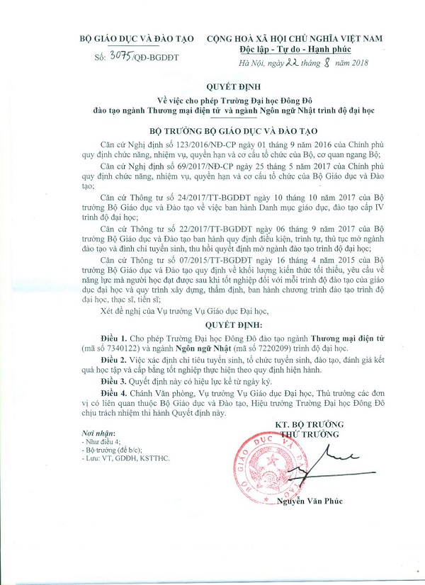 Quyết định mở ngành đại học chính quy - Thương mại điện tử, Ngôn ngữ Nhật