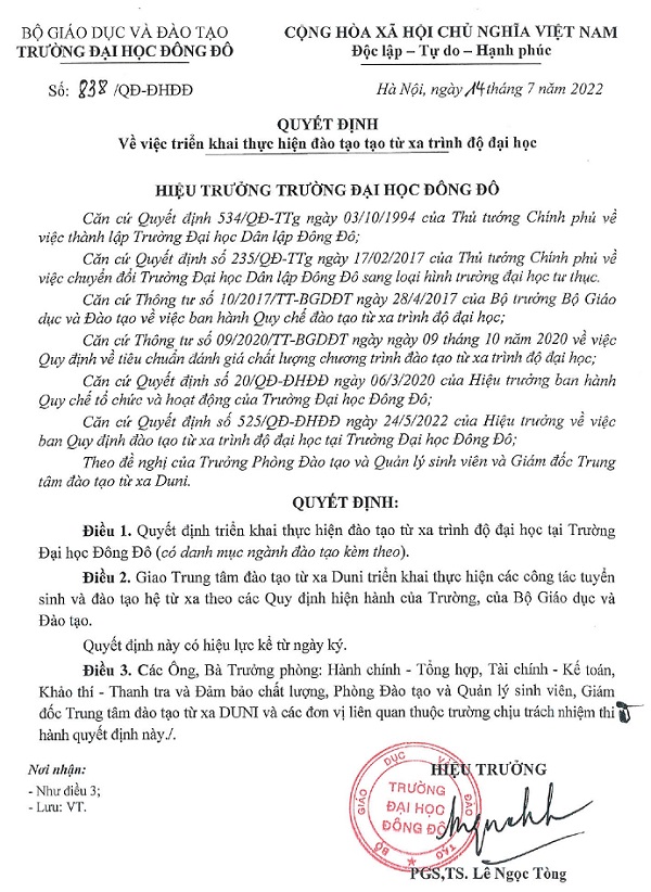 Quyết định về việc triển khai thực hiện đào tạo từ xa trình độ đại học