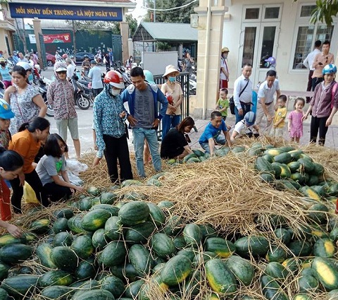 Sinh viên ĐH Đông Đô hăng hái hỗ trợ tiêu thụ dưa hấu giúp nông dân Quảng Nam
