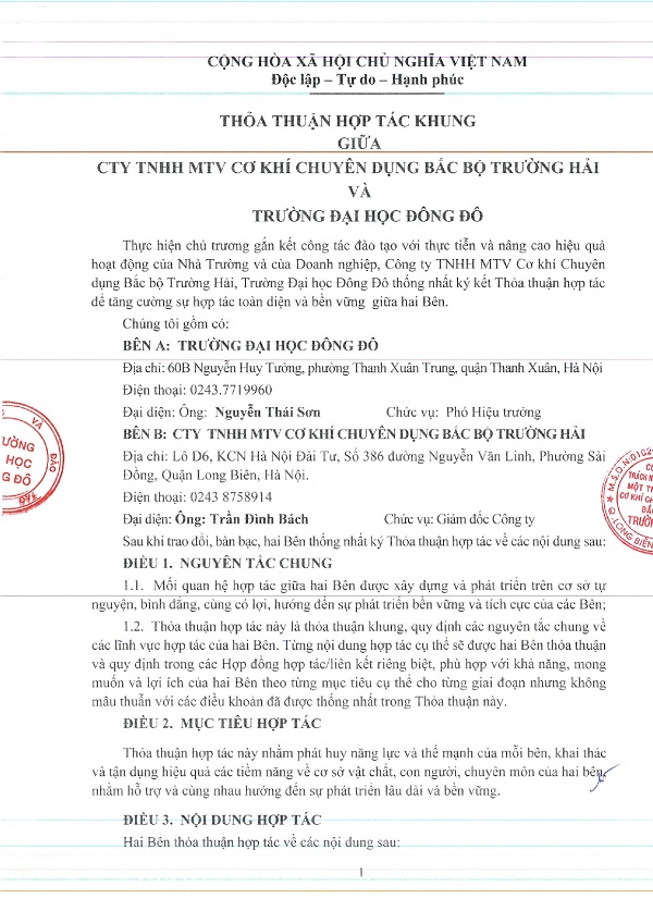 Thỏa thuận hợp tác khung giữa Tập đoàn THACO và trường Đại học Đông Đô