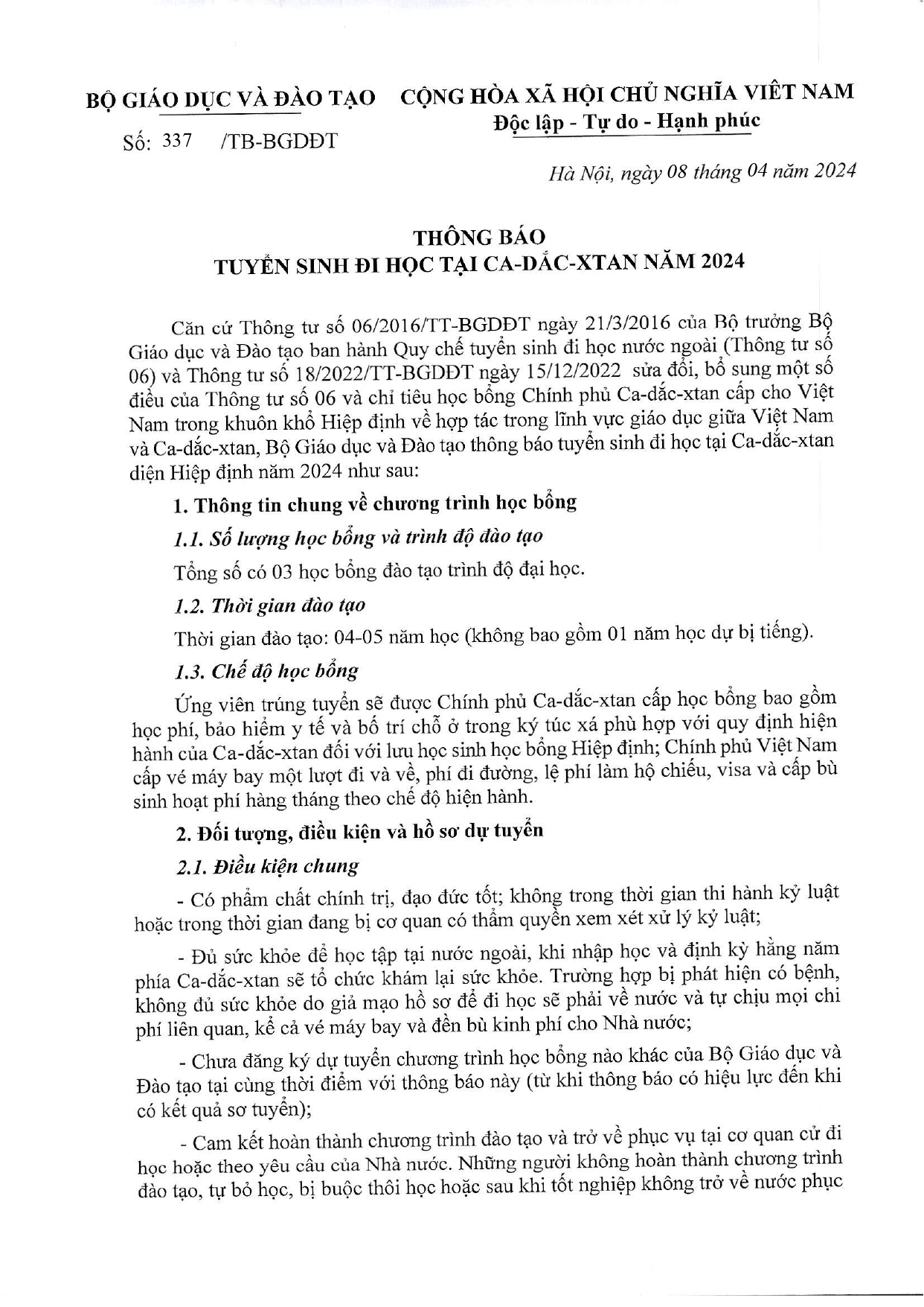 Thông báo chương trình học bổng Ca-dắc-xtan năm 2024