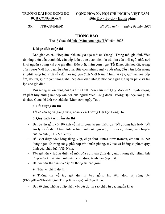 Thông báo cuộc thi "Mâm cơm ngày Tết"