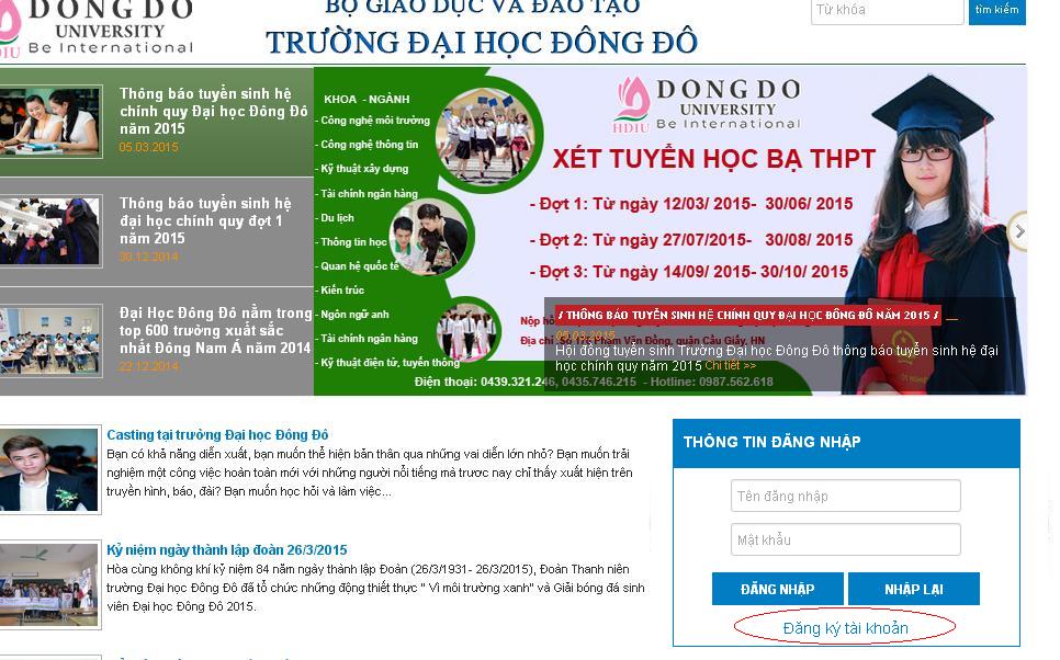 1. Để vào học trường đại học Đông Đô thí sinh chỉ cần đăng ký xét tuyển. Ưu tiên cho những thí sinh đăng ký trước