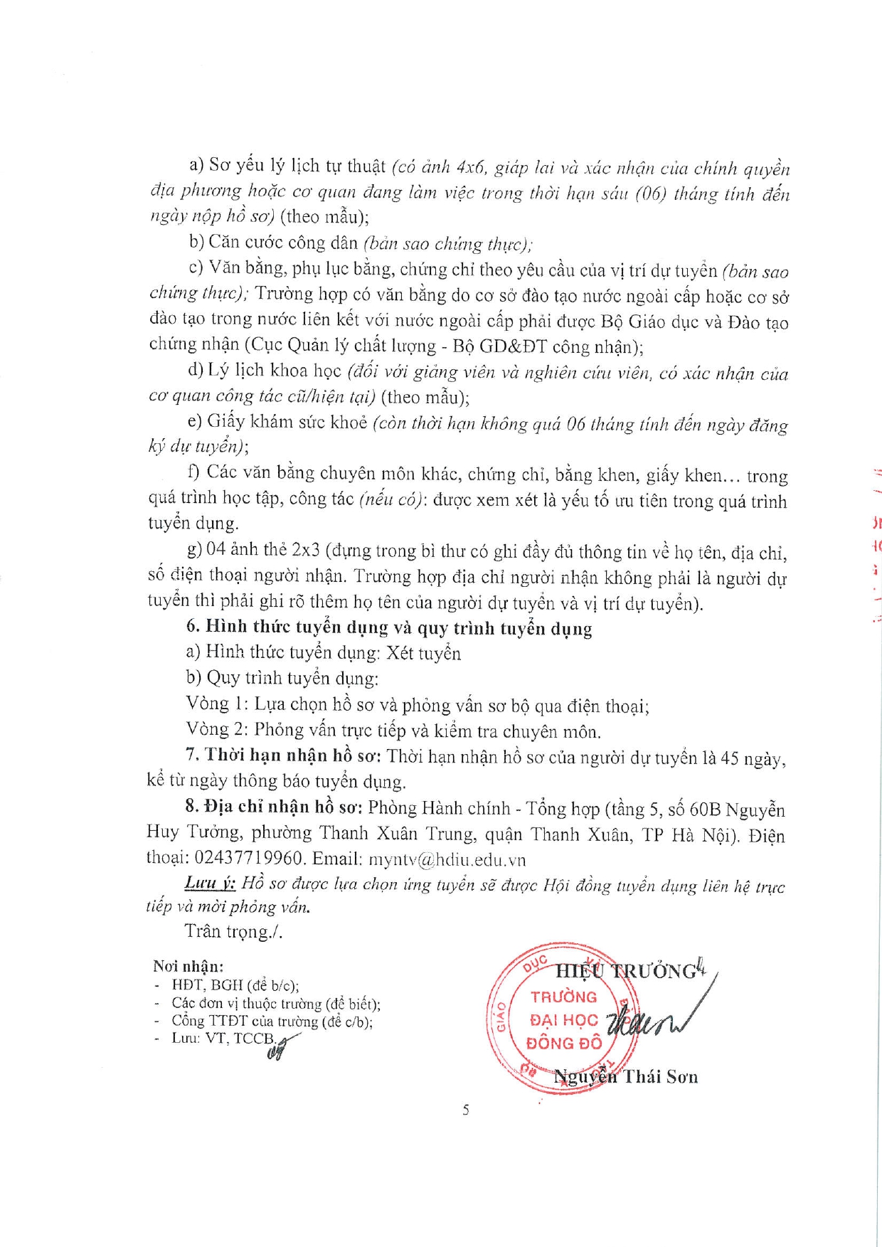 Thông báo tuyển dụng nhân sự năm 2024 tại Trường Đại học Đông Đô