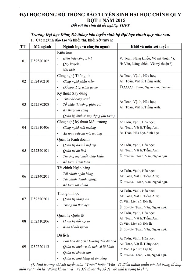 - Địa điểm nhận hồ sơ: Văn phòng Tuyển sinh – Trường Đại học Đông Đô (Số 170 Phạm Văn Đồng, quận Cầu Giấy, Hà Nội); Điện thoại: 0439.321.246