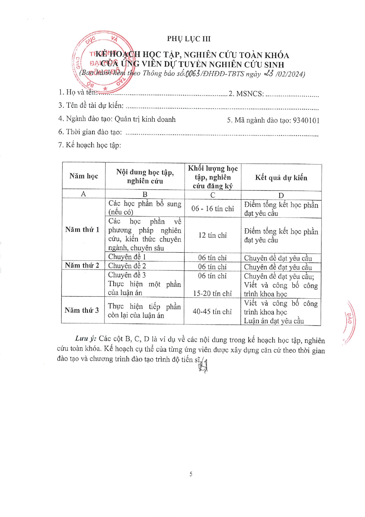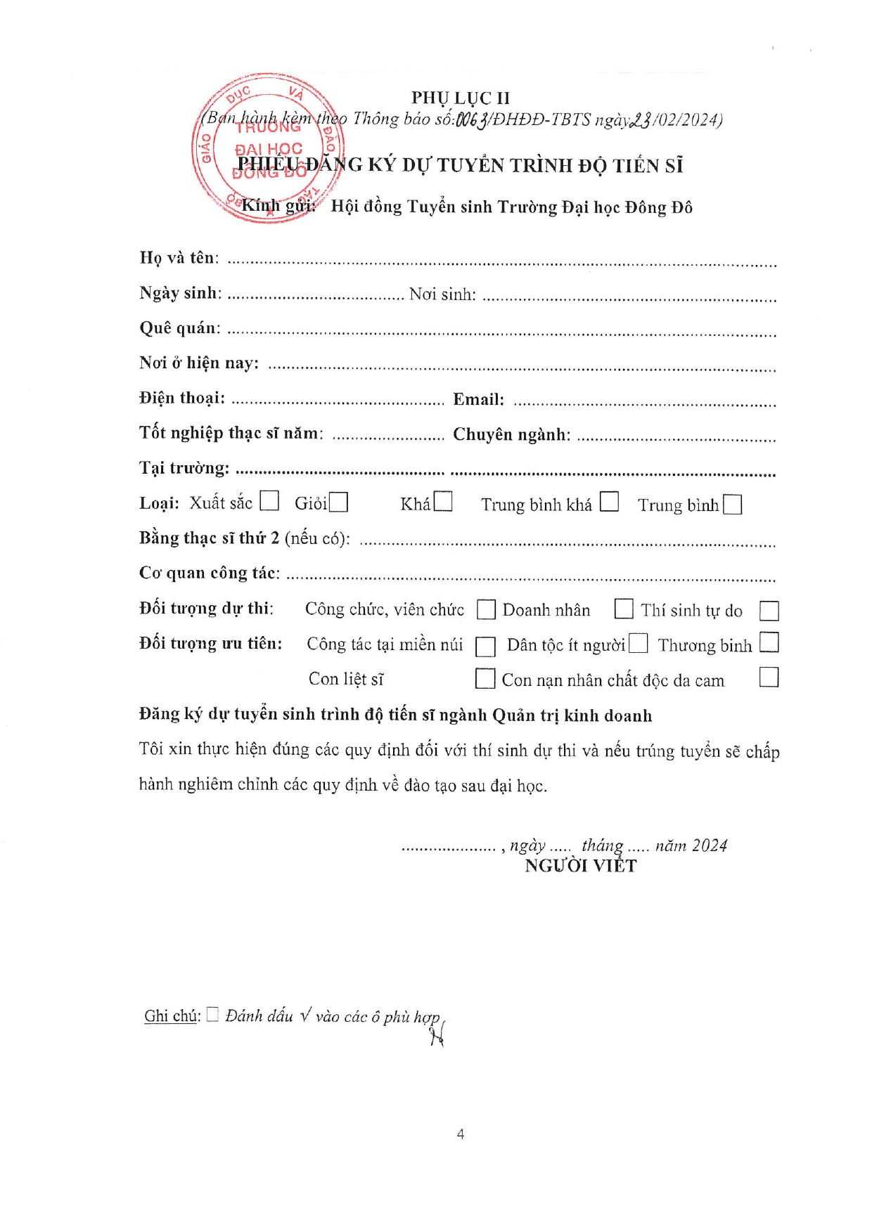 Thông báo tuyển sinh trình độ Tiến sĩ đợt 1 năm 2024