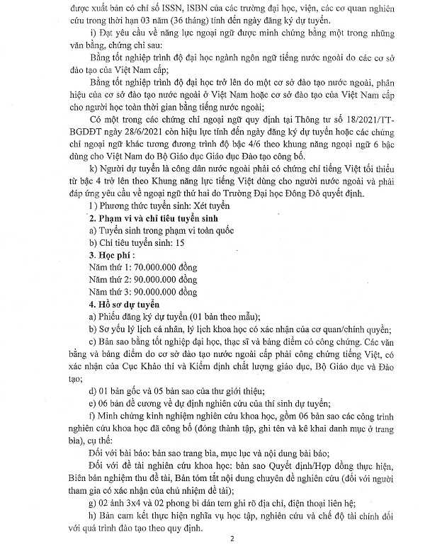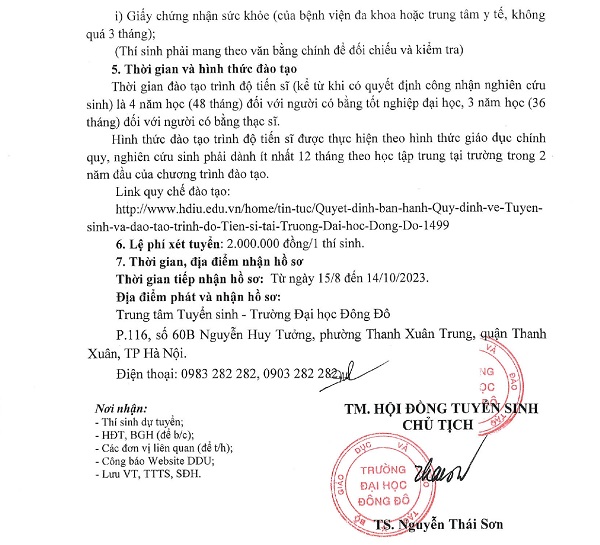 Thông báo tuyển sinh trình độ Tiến sĩ năm 2023