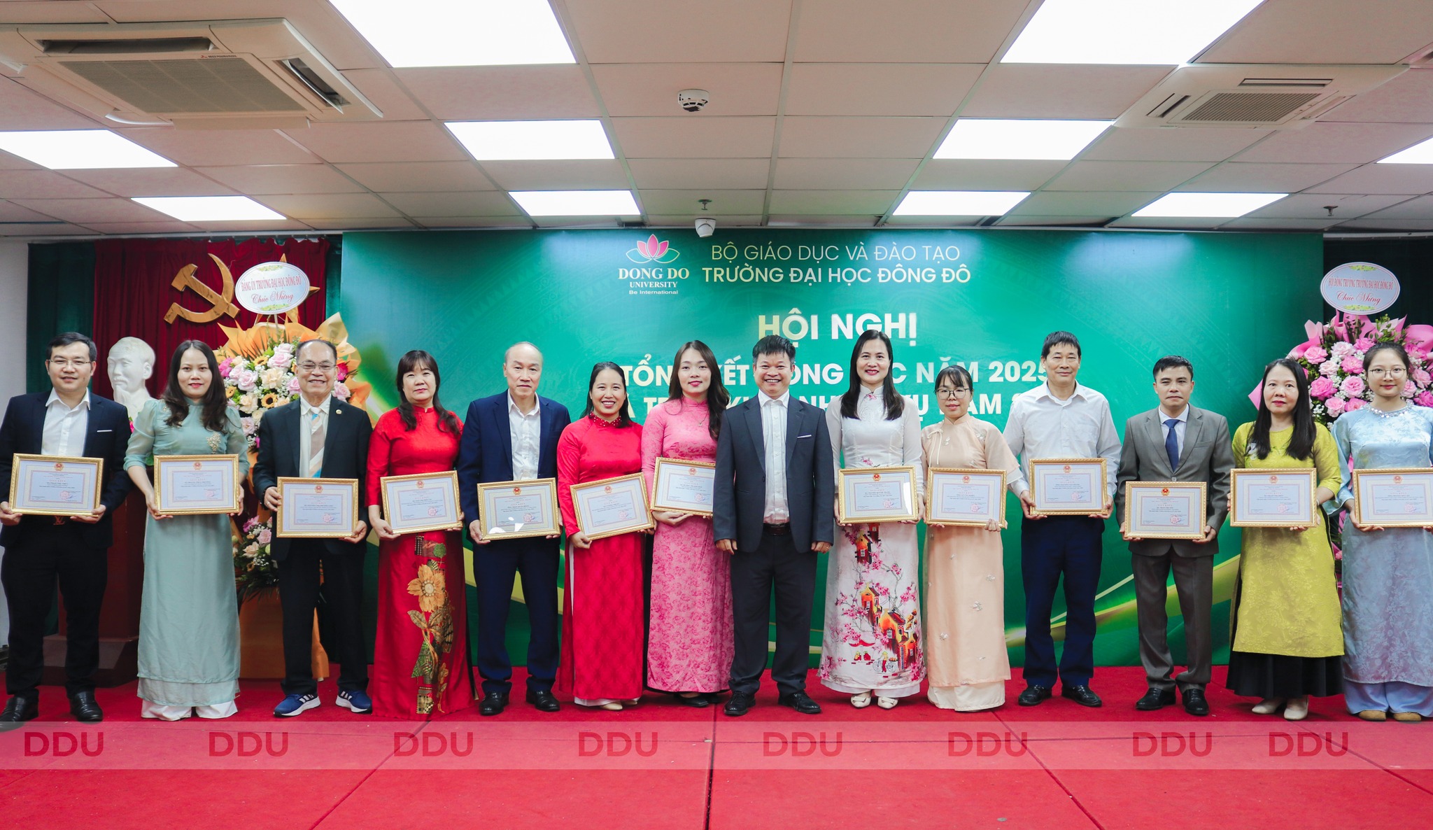 Vừa qua, Trường Đại học Đông Đô long trọng tổ chức Hội nghị Tổng kết công tác năm 2025 và triển khai phương hướng, nhiệm vụ năm 2026 với sự có mặt của Đảng ủy, Hội đồng Trường, Ban Giám Hiệu và toàn thể cán bộ, giảng viên, người lao động Nhà trường.
