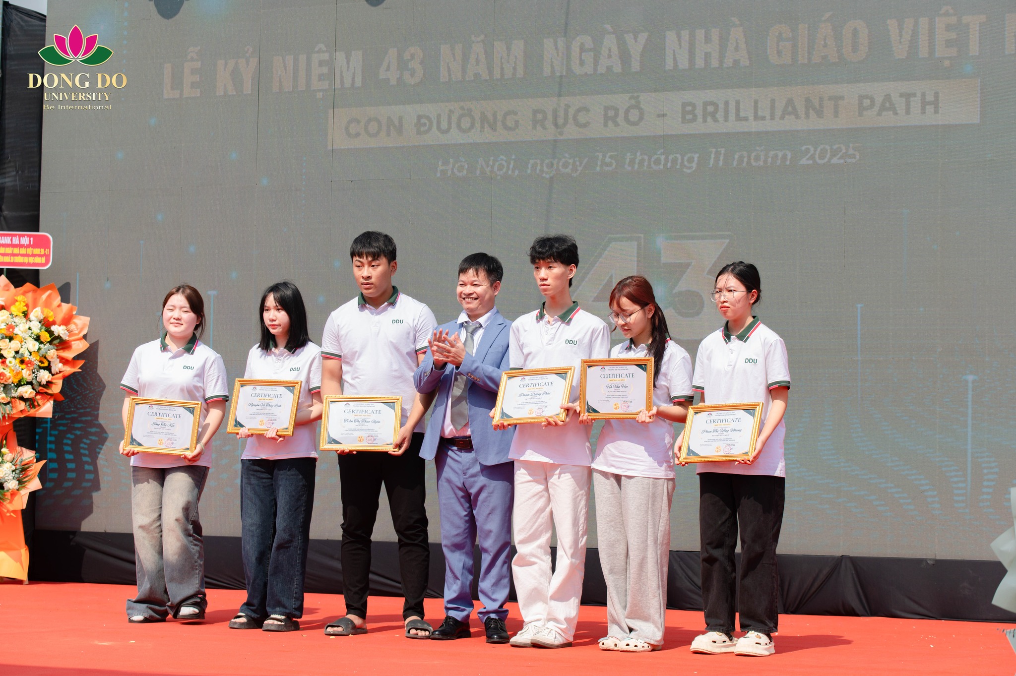 Sáng 15/11/2025, trong không khí trang trọng của Lễ kỷ niệm 43 năm Ngày Nhà giáo Việt Nam 20/11 kết hợp Chào tân sinh viên K30, Trường Đại học Đông Đô đã tổ chức trao học bổng đầu vào dành cho các bạn tân sinh viên có thành tích nổi bật trong kỳ tuyển sinh năm 2025 – những "tân binh" chính thức bước vào hành trình đại học đầy mới mẻ và thử thách.