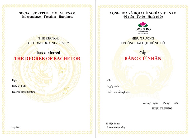 Hiện tại, trường Đại học Đông Đô đã tiến hành thiết kế và trình duyệt mẫu bằng mới theo đúng quy định của Bộ GD&ĐT. Dự kiến trong tháng 5/2020 sẽ chính thức ban hành và hoàn tất việc cấp bằng cho sinh viên toàn trường.