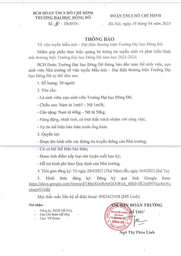 Tuyển mẫu ảnh - Đại diện thương hiệu Trường Đại học Đông Đô
