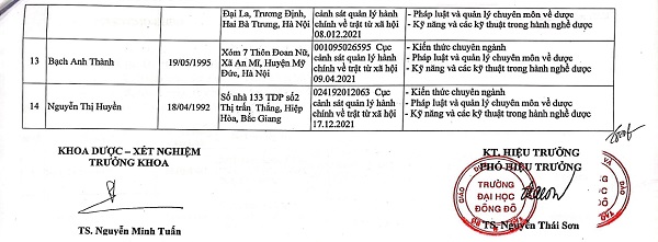 Danh sách học viên đã hoàn thành chương trình đào tạo, cập nhật kiến thức chuyên môn về Dược tháng 7 năm 2023