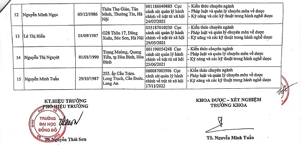 Danh sách học viên đã hoàn thành chương trình đào tạo, cập nhật kiến thức chuyên môn về Dược tháng 8 năm 2023