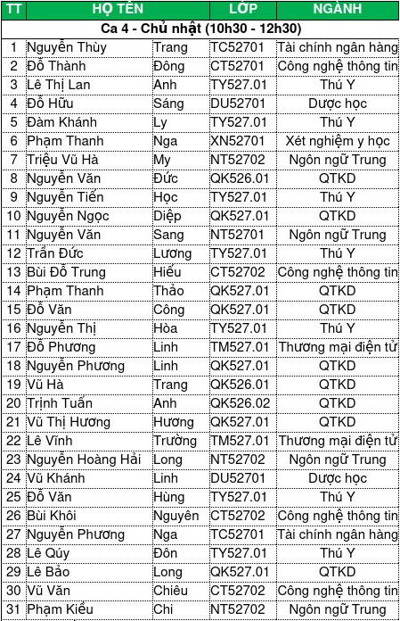 - Sinh viên có mặt trước giờ thi tối thiểu 15 phút;