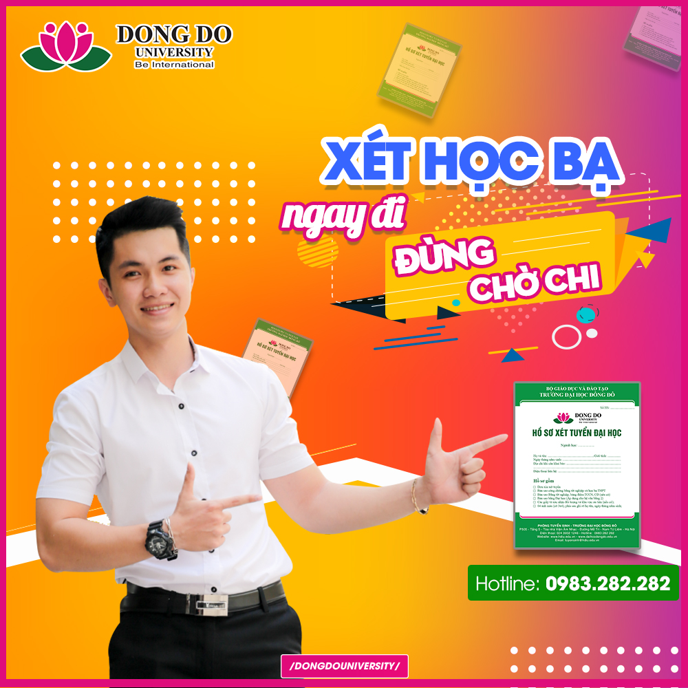 - Chủ động đăng ký xét tuyển ở các ngành học mình yêu thích, nếu đủ điều kiện về điểm, hãy cứ tự tin nộp hồ sơ vào Đại học Đông Đô trước 20/08 nhé!