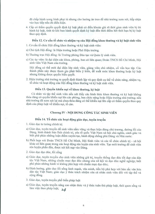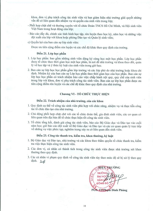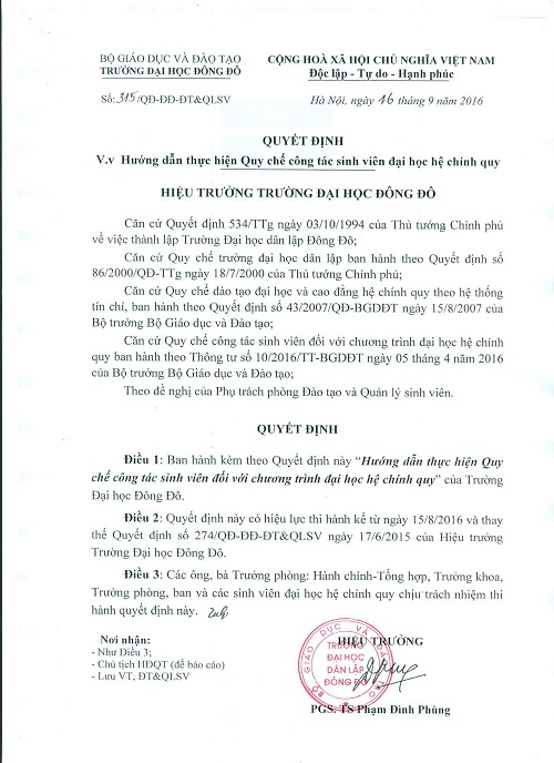 Hướng dẫn thực hiện quy chế công tác sinh viên đối với chương trình đào tạo Đại học chính quy