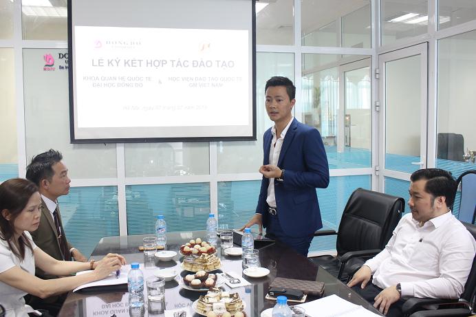 Cũng trong buổi lễ, TS.Phạm Hoài Nam – Giám đốc Học viện đào tạo quốc tế GM Việt Nam – cho biết, theo một số thống kê, hiện nay nhân lực tại Việt Nam có khoảng 20% thiếu về kỹ năng chuyên môn, 25% thiếu về ngoại ngữ, và đặc biệt là 55% thiếu kỹ năng làm việc, kỹ năng mềm. Với giáo trình độc quyền về đào tạo nhân sự hỗ trợ cấp cao từ Hàn Quốc, cùng với hàng loạt chuyên gia có chuyên môn cao, Học viện GM Việt Nam cam kết sẽ hỗ trợ về mặt tài chính, chuyên môn trong các hoạt động ngoại khóa của khoa Quan hệ quốc tế. Thông qua đó, ông hi vọng sẽ giúp sinh viên khoa Quan hệ quốc tế nói riêng và sinh viên trường Đại học Đông Đô nói chung có được những kỹ năng làm việc tốt nhất, nhằm tăng sức cạnh tranh và tạo thêm nhiều cơ hội việc làm với những doanh nghiệp trong và ngoài nước.