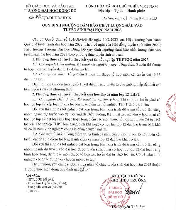 Quy định ngưỡng đảm bảo chất lượng đầu vào tuyển sinh Đại học năm 2023