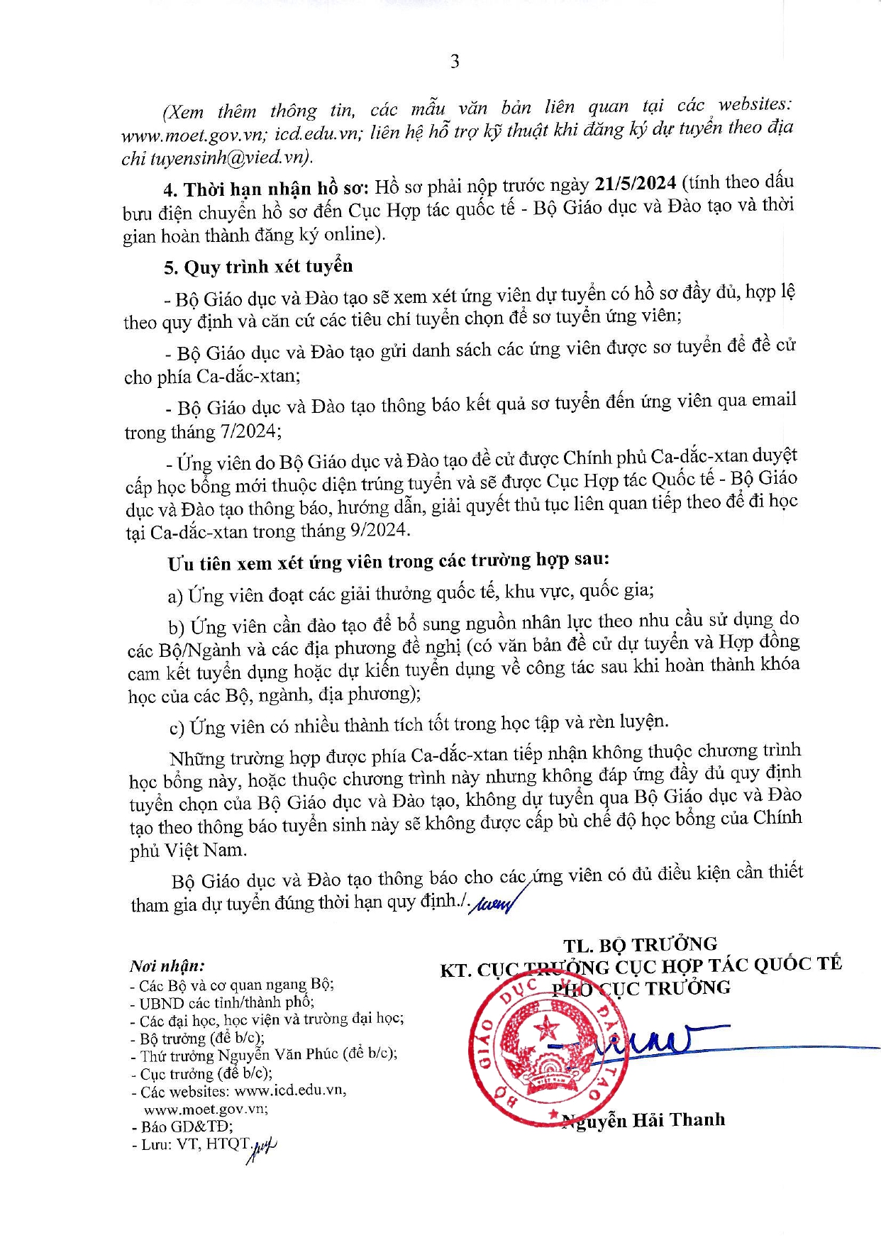 Thông báo chương trình học bổng Ca-dắc-xtan năm 2024