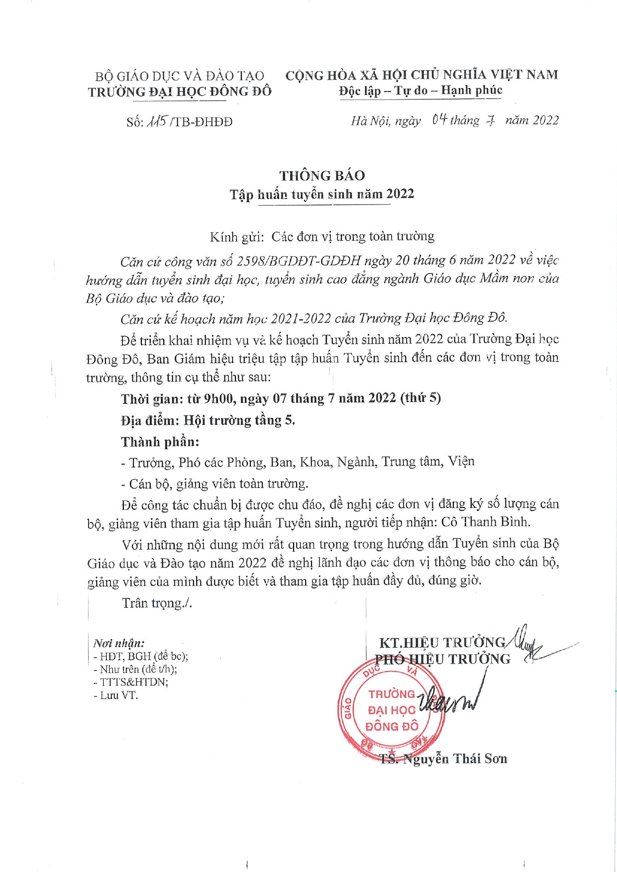 Thông báo tập huấn tuyển sinh năm 2022