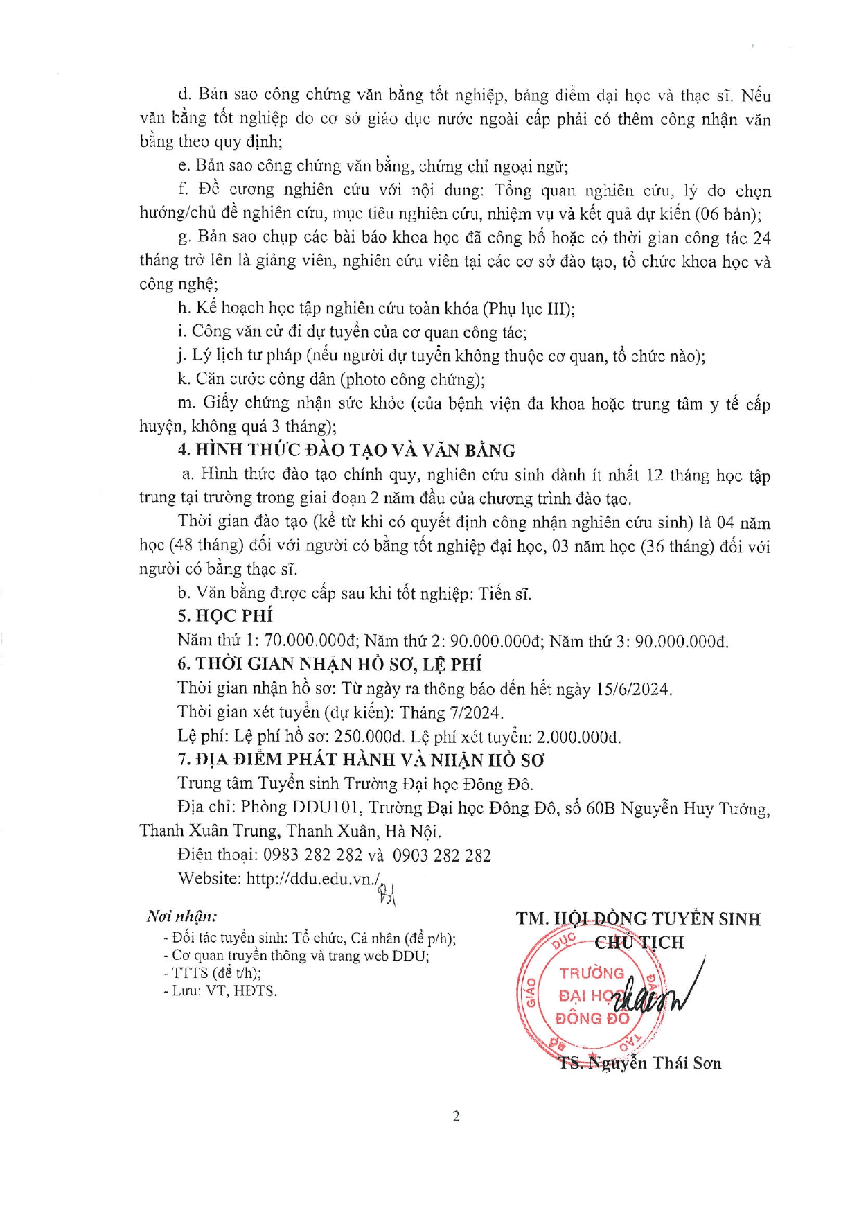 Thông báo tuyển sinh trình độ Tiến sĩ đợt 1 năm 2024