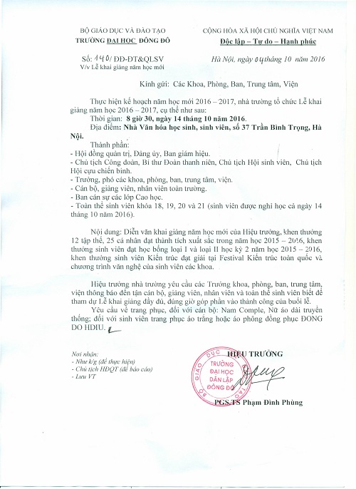 Thông báo về Lễ khai giảng năm học 2016 - 2017