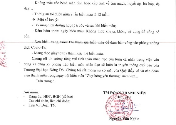 Thông báo về Ngày hội hiến máu "Giọt hồng yêu thương"