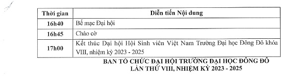 Chương trình Đại hội đại biểu Hội sinh viên Việt Nam trường Đại học Đông Đô lần thứ VIII (2023 - 2025)