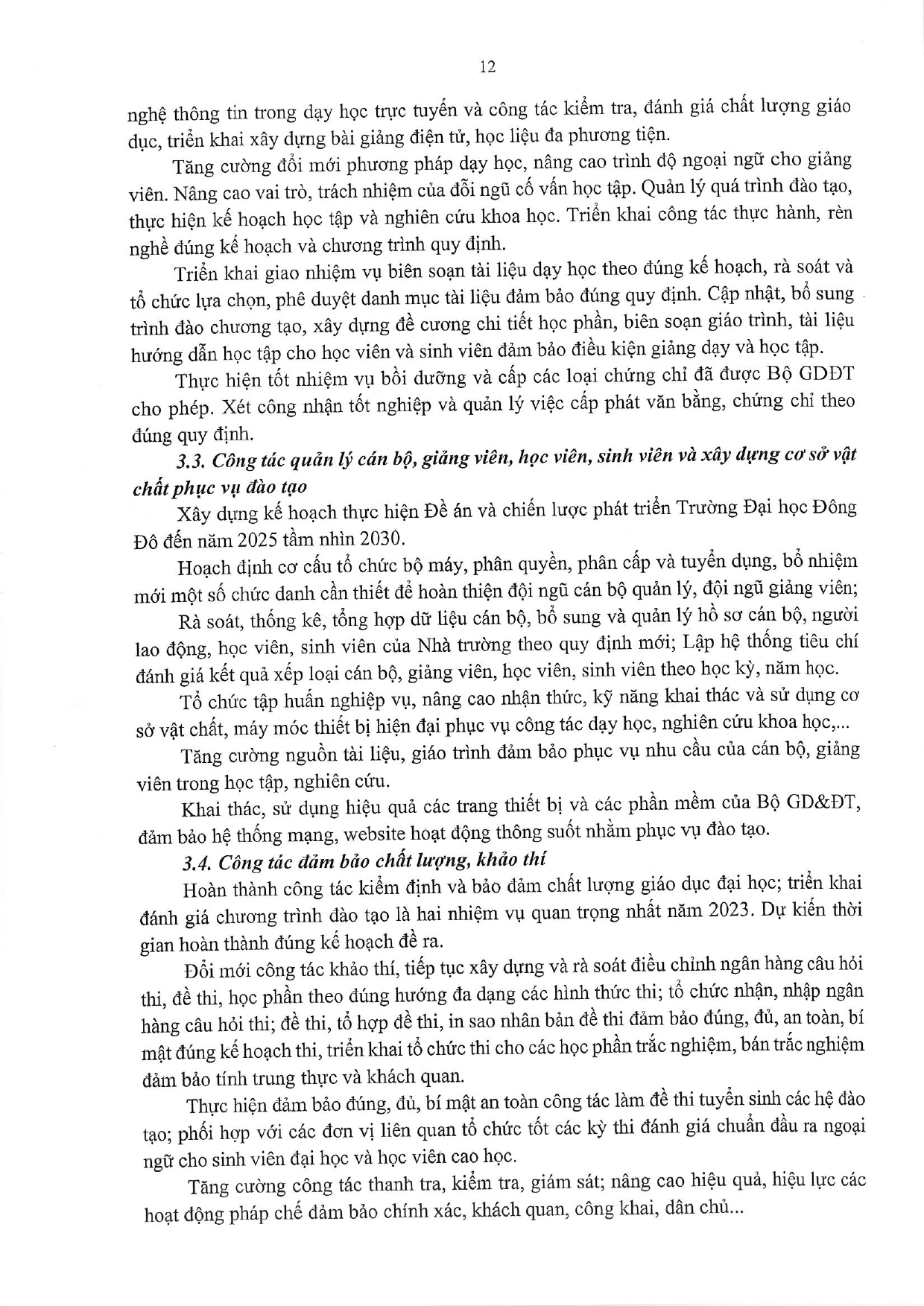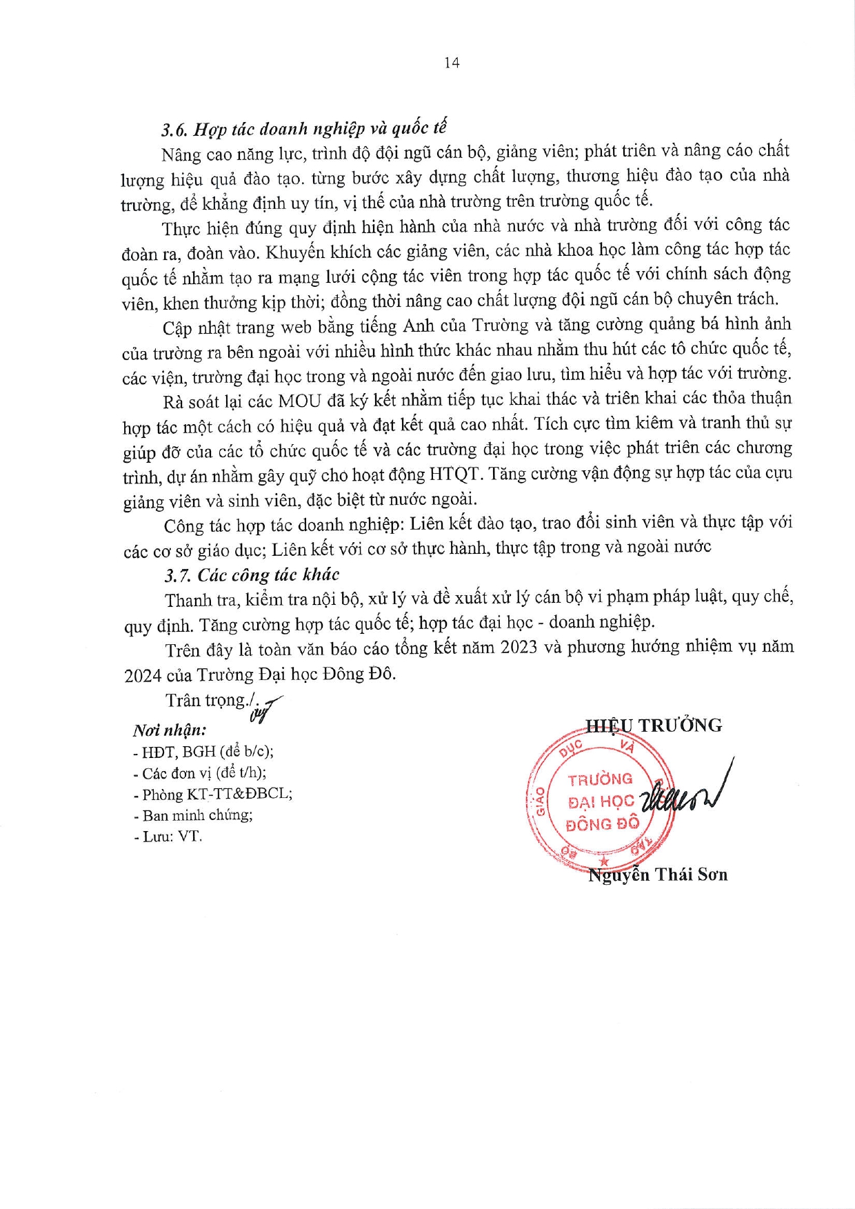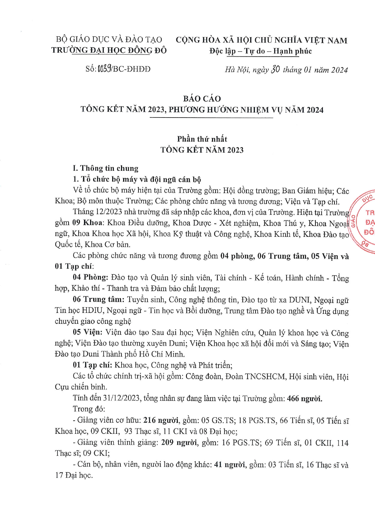 Trường Đại học Đông Đô thực hiện báo cáo tổng kết năm 2023 và phương hướng nhiệm vụ năm 2024. Qúy thầy cô và các cán bộ nhận viên trong Nhà trường theo dõi và thực hiện.