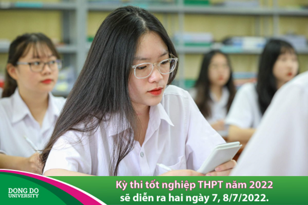 Kỳ thi sẽ được tổ chức vào ngày 7, 8/7/2022. Cụ thể: Sáng 7/7, thí sinh dự thi môn Ngữ Văn; chiều 7/7, thí sinh dự thi môn Toán; sáng 8/7, thí sinh dự thi bài thi Khoa học Tự nhiên và bài thi Khoa học Xã hội; chiều 8/7, thí sinh dự thi môn Ngoại ngữ. Chiều 6/7, thí sinh đến phòng thi làm thủ tục dự thi, đính chính sai sót (nếu có) và nghe phổ biến Quy chế thi, lịch thi. Ngày 9/7 là ngày thi dự phòng.