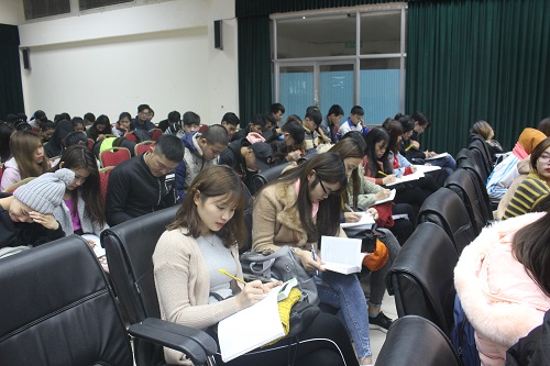 Sinh viên khóa 22 có mặt chuẩn bị học tập trong hội nghị