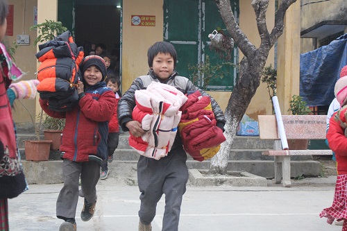 Không muốn để các em chờ lâu trong gió rét, đoàn từ thiện nhanh chóng phân chia bánh kẹo, áo khoác mới và một số quần áo cũ mùa đông cho các em học sinh và cả bà con trong vùng. Những phần quà ấy tuy không nhiều, nhưng sẽ phần nào giúp các em bớt đi thiếu thốn, khó khăn và đẩy lui giá buốt vùng cao.