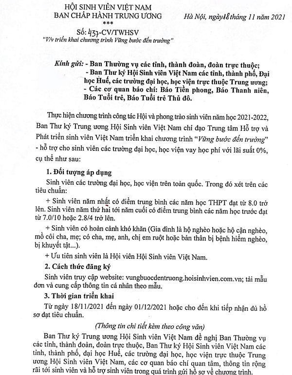 Chương trình "Vững bước tới trường" hỗ trợ sinh viên vay học phí lãi suất 0%