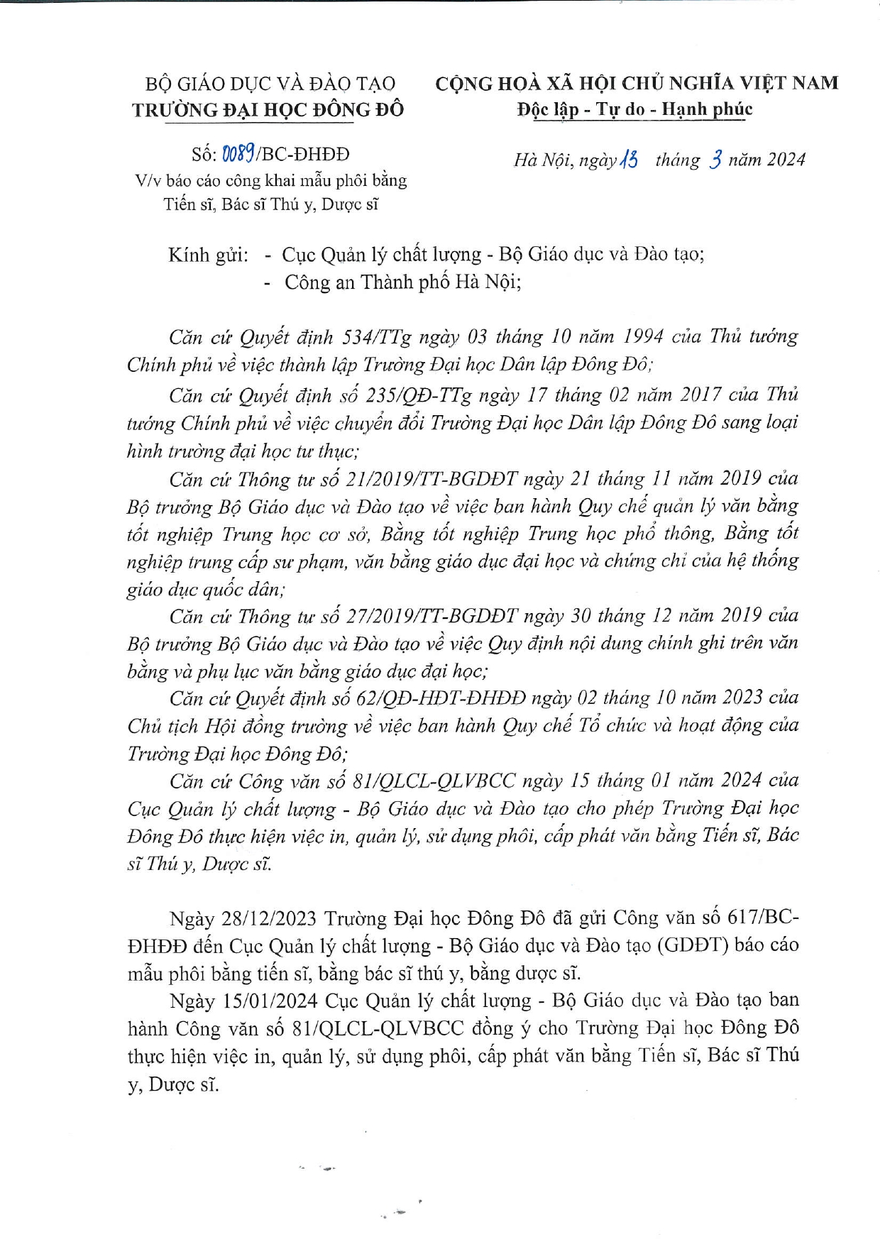 Chi tiết xem báo cáo công khai mẫu phôi bằng của Trường Đại học Đông Đô được đính kèm dưới đây.