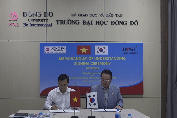 Sáng ngày 3/7, Trường Đại học Đông Đô và Trường Cao đẳng Khoa học và Kỹ thuật Dongwon (Hàn Quốc) đã ký Biên bản Ghi nhớ Hợp tác giữa hai trường trong việc giao lưu trao đổi sinh viên, cán bộ giảng viên và hợp tác trong chương trình đào tạo.