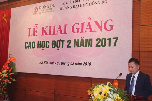Phát biểu tại buổi Lễ, TS. Dương Văn Hòa – Hiệu trưởng nhà trường đã chúc mừng các tân học viên cao học vì sự cố gắng tích cực ôn tập để vượt qua kì thi tuyển sinh cao học đợt 2 năm 2017 để trở thành học viên sau Đại học của Đại học Đông Đô. Thầy cũng nhấn mạnh: “Học viên Sau đại học của nhà trường phải luôn có sự cố gắng, quyết tâm cao độ trong quá trình học tập. Tấm bằng Thạc sĩ chỉ là điều kiện cần, nhưng kiến thức và kỹ năng mới chính là điều kiện đủ để các học viên tồn tại trong điều kiện toàn cầu hoá và được xã hội chấp nhận”. Trước khi kết thúc bài phát biểu, TS. Dương Văn Hòa một lần nữa khẳng định sự tin tưởng vào tinh thần và trách nhiệm của các tân học viên trong việc hoàn thành trọn vẹn và thành công khóa học Thạc sĩ tại Đại học Đông Đô.
