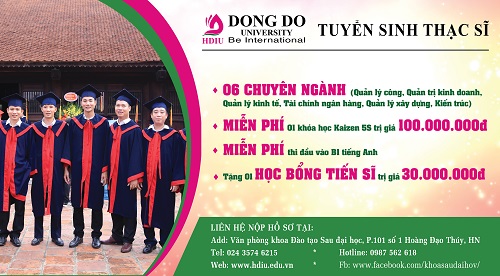 Với những kinh nghiệm về tổ chức đào tạo sau đại học và hệ thống cơ sở vật chất hiện đại đảm bảo điều kiện học tập, nghiên cứu chuyên sâu của học viên, trường Đại học Đông Đô là một trong những địa chỉ đào tào Sau Đại học uy tín được đông đảo học viên lựa chọn.