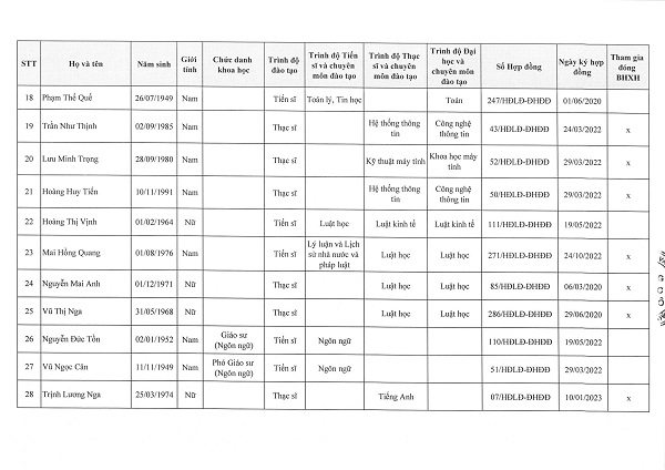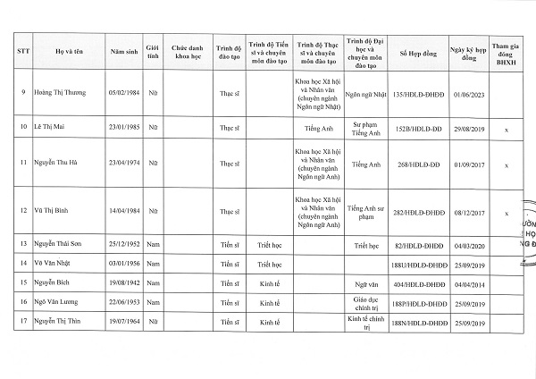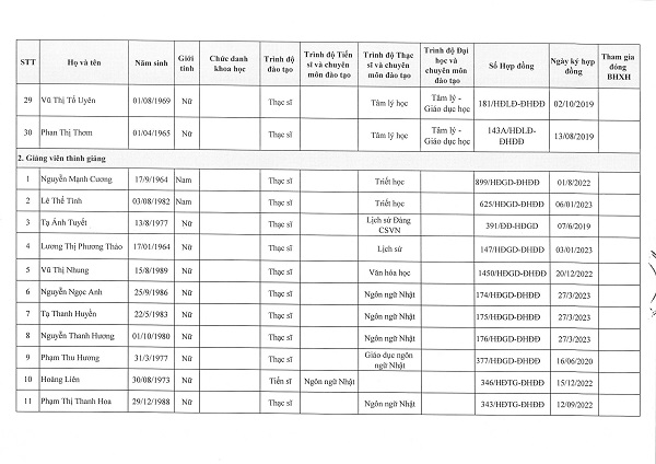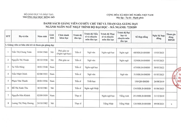 Danh sách Giảng viên cơ hữu ngành Ngôn ngữ Nhật
