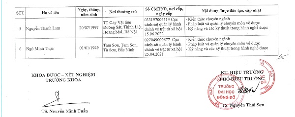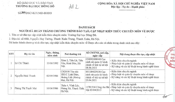 Danh sách người đã hoàn thành chương trình đào tạo, cập nhật kiến thức chuyên môn về dược - Tháng 5/2023