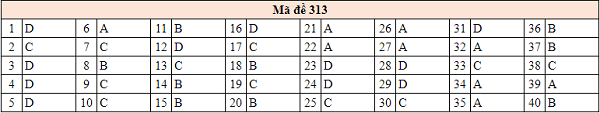 Đáp án môn Sinh học xem TẠI ĐÂY