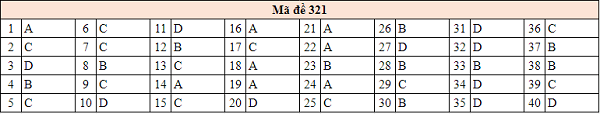 Đáp án môn Vật lý xem TẠI ĐÂY