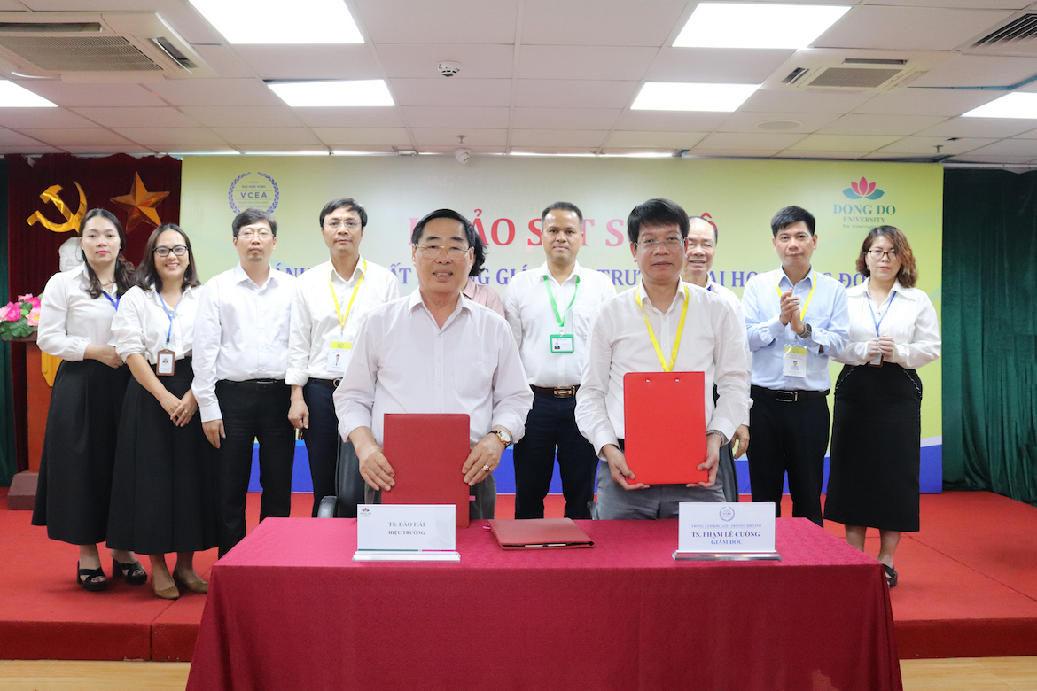 Kết thúc khảo sát sơ bộ, Trưởng Đoàn đánh giá ngoài, Giám đốc Trung tâm KĐCLGD Trường Đại học Vinh và Hiệu trưởng Nhà trường đã cùng ký Biên bản Ghi nhớ kết quả khảo sát sơ bộ đánh giá chất lượng giáo dục Trường Đại học Đông Đô của Đoàn chuyên gia ĐGN.
