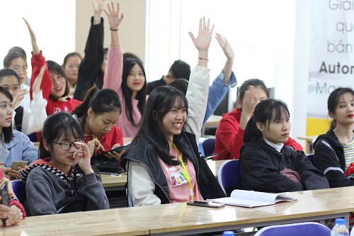 Sinh viên vô cùng hào hứng tham gia các phần vấn đáp - giao lưu tại Hội thảo