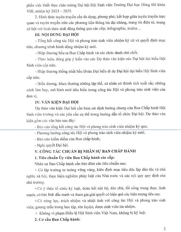 Kế hoạch tổ chức Đại hội Hội Sinh viên Trường Đại học Đông Đô lần thứ VIII (2023 - 2025)