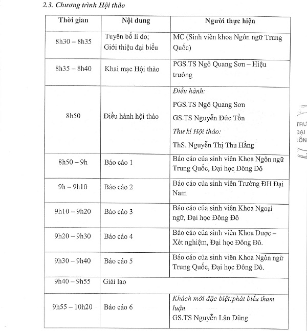 Kế hoạch tổ chức Hội thảo Khoa học cấp Trường dành cho sinh viên