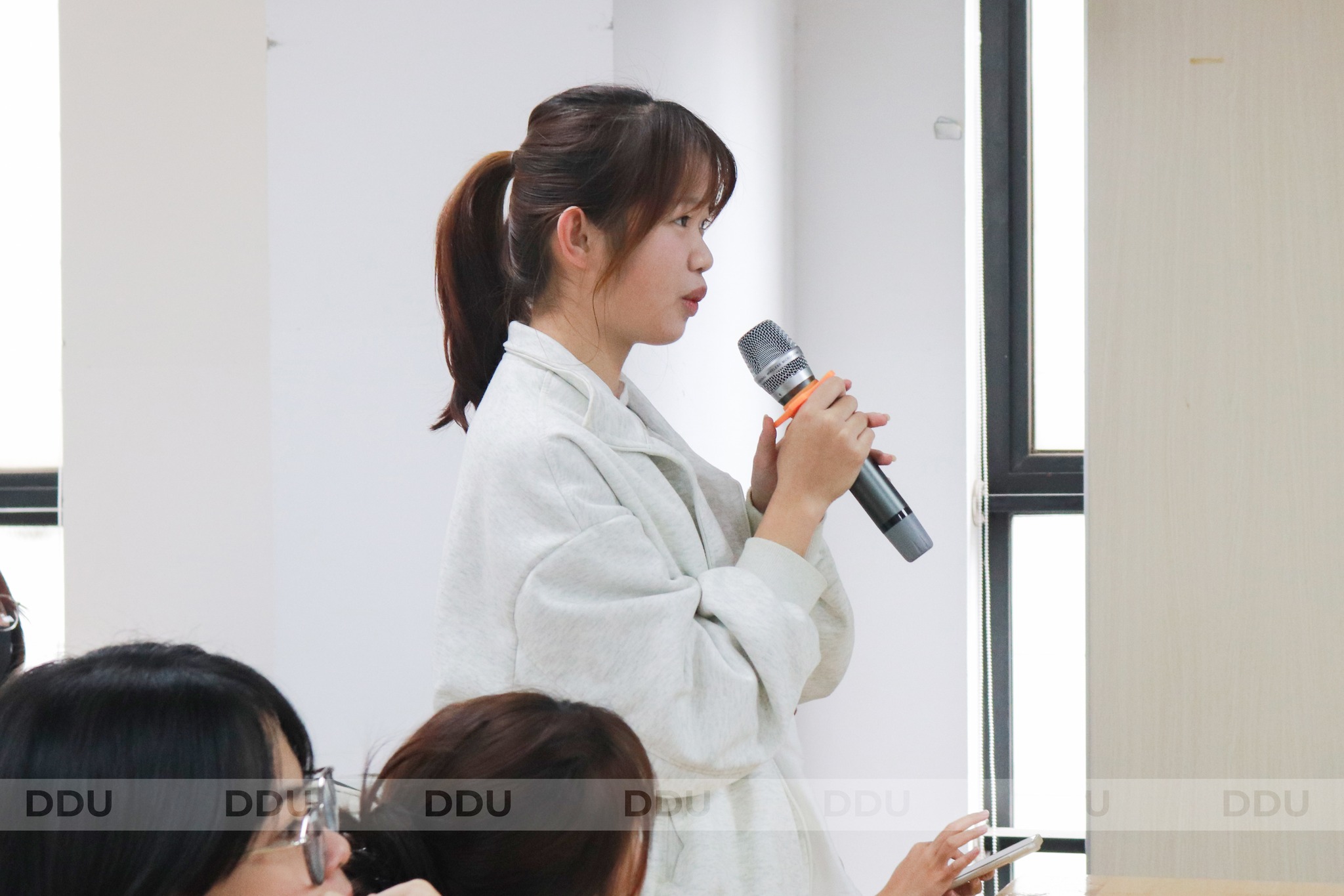 Tại diễn đàn, nhiều câu hỏi thực tế đã được các bạn sinh viên đặt ra xoay quanh chương trình học, hoạt động nghiên cứu khoa học, cũng như cơ hội thực tập – định hướng nghề nghiệp trong tương lai.