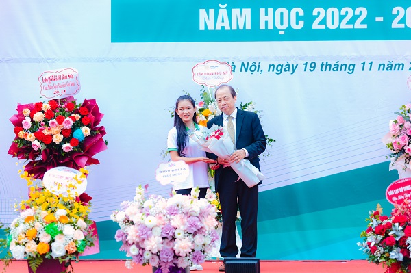 Tân sinh viên Vũ Ngọc Linh tặng hoa tri ân các CBGV Nhà trường