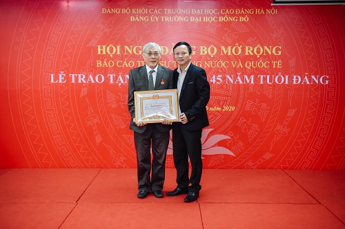 Ngày 1/10, Đảng bộ Trường Đại học Đông Đô long trọng tổ chức Lễ trao tặng Huy hiệu 45 năm tuổi Đảng cho đảng viên Nguyễn Văn Xuất trực thuộc Chi bộ 5, Đảng bộ Trường.